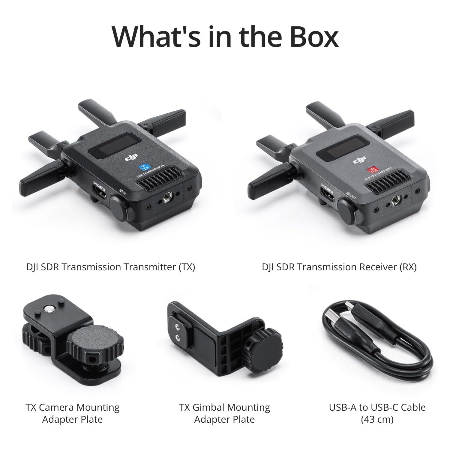 The DJI SDR Transmission is a powerful and compact video transmission system, It includes Transmitter(TX) and Receiver(RX), Specially designed for professional workflows. With multiple input ports (SDI, HDMI, and USB-C), it ensures smooth and reliable signal transfer.