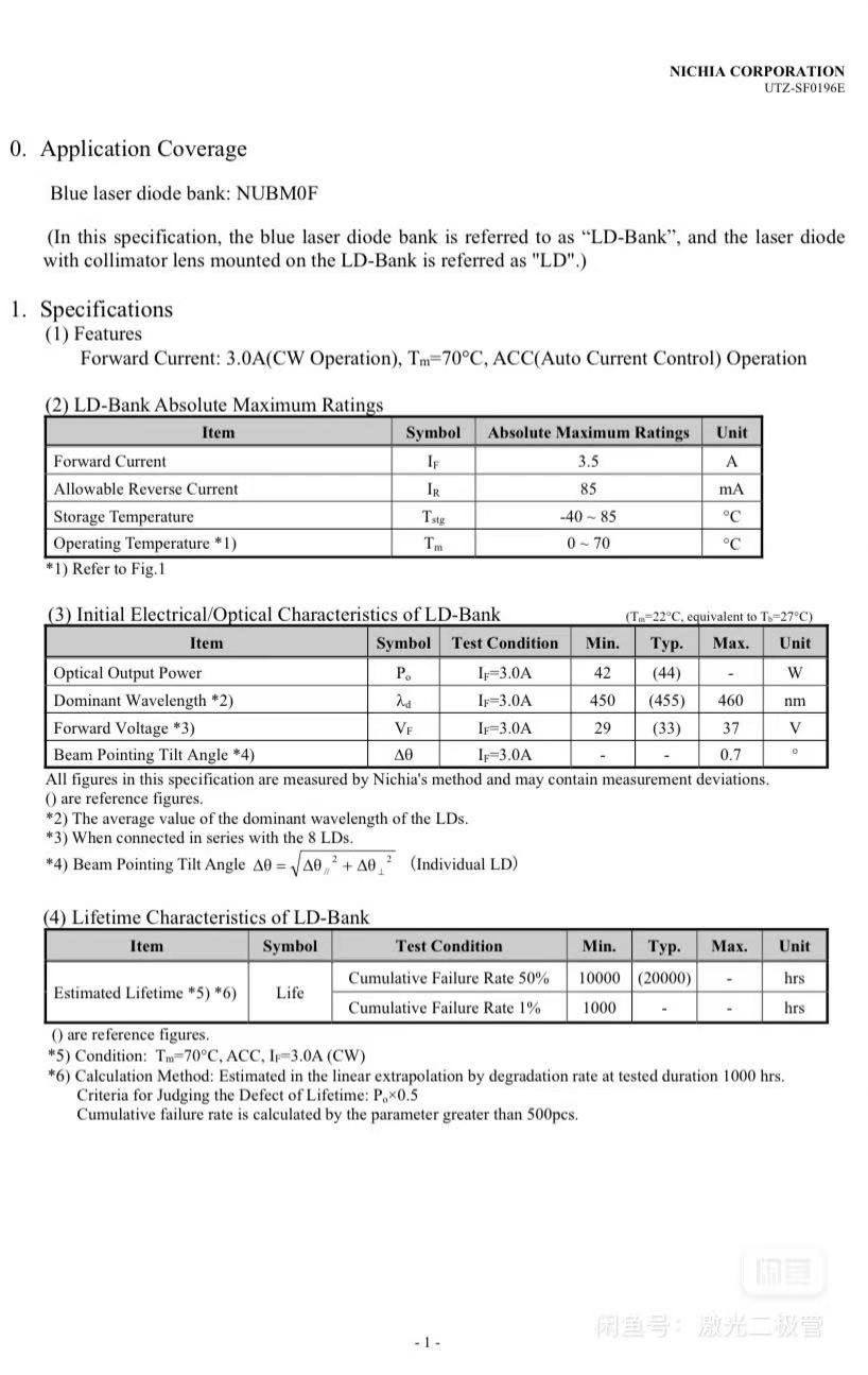 - NICHIA NUBM0F blue laser dio
