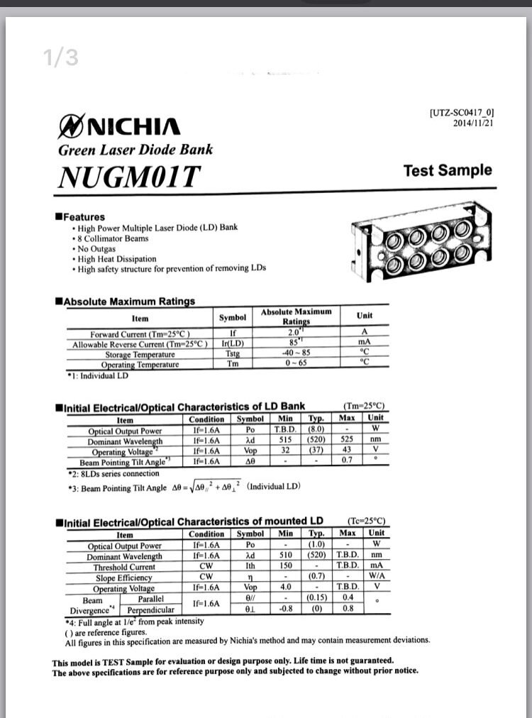| Product Name and Model | Nichia NUGM01 Green Laser Unit |