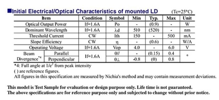 - NICHIA NUGM02 Green Laser Diode, High-power laser diode chip, 520nm, 7W