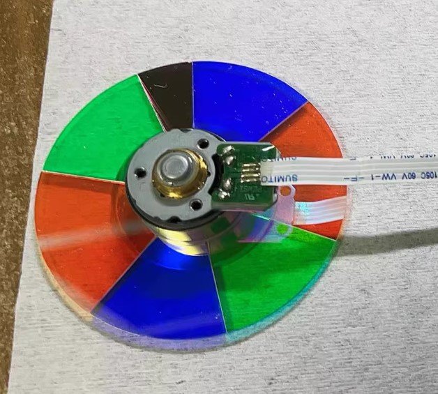 Optoma HD803 DLP projector color wheel, six speed, 7 segments, RGBRG ND B, service manual is available.